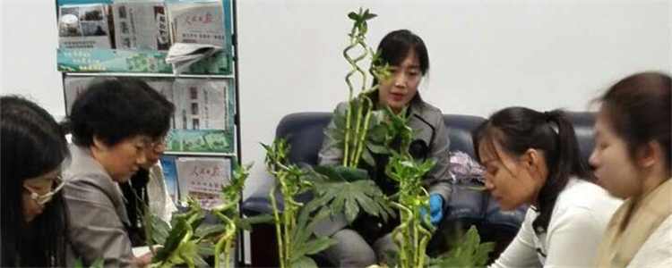 教职工们接受插花艺术的专业指导