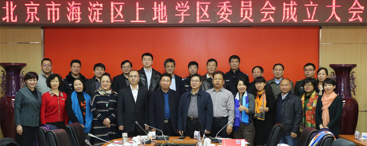 上地学区委员会主任委员、上地街道办事处副主任赵洪让(前右1)宣读章程