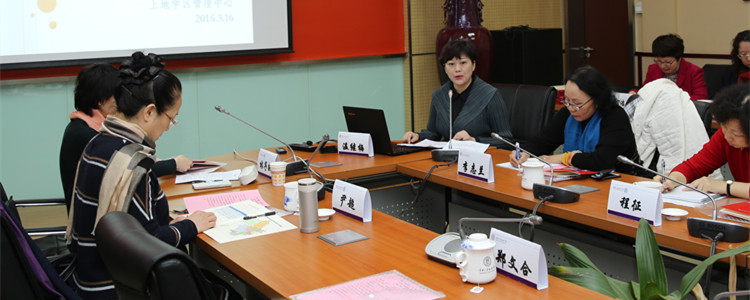上地学区委员会秘书长、上地学区管理中心副主任温继梅(中左1)主持会议