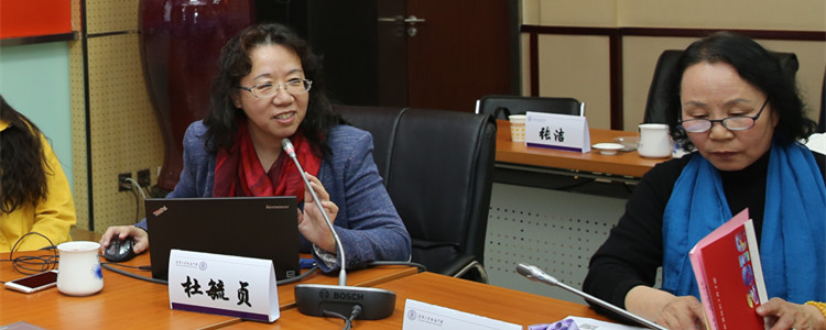 bg真人试玩副校长杜毓贞(右2)为大家介绍bg真人试玩办学理念及办学特色