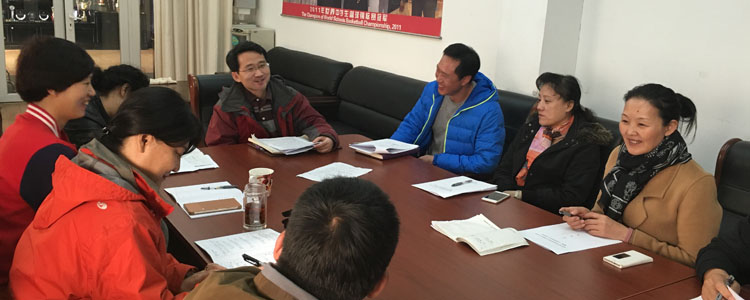 体育组丁磊老师主持会议,向大家汇报了校园足球工作组成立的前期筹备情况及现状,包括足球实验校的申报、专项经费使用情况、前期足球培训等,并宣布校园足球工作组成立。最终确立的校园足球工作组委员名单为: