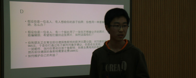 分享会以团队协作和情景模拟的形式展开。第一环节是换位思考大问答,同学们在情景模拟的问答中,尝试从对方的角度去考虑问题。第二环节是难民求助模拟,每组“难民”代表需要说服“boss”营员为本组提供救济。第三环节的情景模拟中设置一些难题,同学们需要想办法巧妙的解决难题。这种团队协作和情景模拟的方式,充分调动了每一位参与者的积极性,将书中深奥难懂的知识转化为现实生后中的案例和时间。