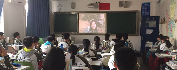 学生在教室认真欣赏微视频