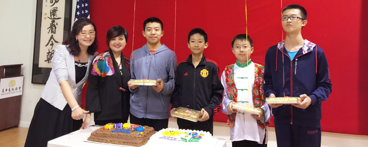 在美中文化协会大家一起为赴美期间过生日的张明宇、李辰健、罗昊儒三位同学庆祝生日
