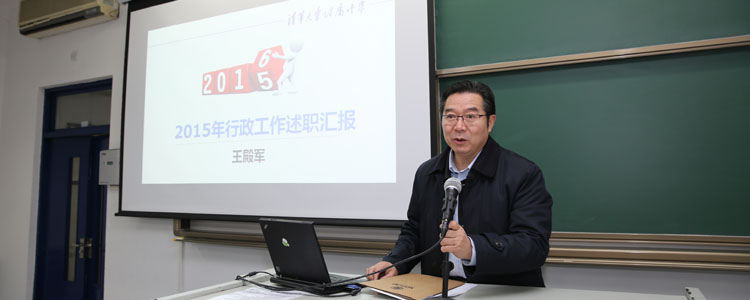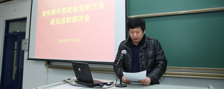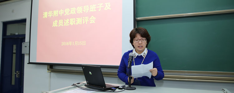 2016年1月15日下午,bg真人娱乐召开党政领导干部考核述职及民主测评会。会议由bg真人娱乐党委书记方妍主持。bg真人娱乐全体党政班子领导、各中心主任、在职党支部书记、民主党派代表、工会主席、副主席、大学教代会代表及各办公室负责人共65人参加会议,清华大学党委组织部副部长欧阳沁参加了述职会并现场组织了对干部的民主测评。