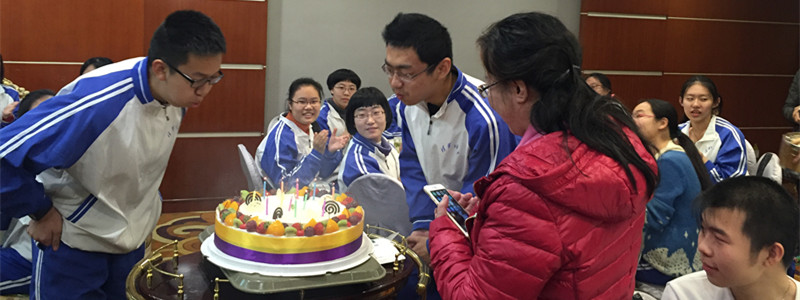 1月16日师生一行启程,于当日晚上6点抵达。在当日晚餐期间学校为此次考察期间过生日的两名同学准备了生日蛋糕以及生日礼物,并以欢快的生日祝福歌开启了愉快的安徽之旅。