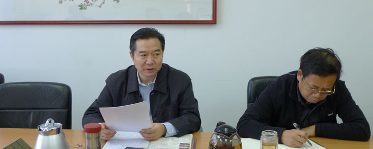 王殿军校长(左)代表附中领导班子进行“三严三实”对照检查汇报