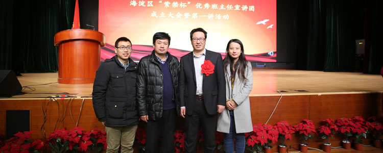 1月8日,海淀区“紫禁杯”优秀班主任表彰会暨“紫禁杯”宣讲团第一讲活动举行。大会宣布了海淀区获得2015年北京市“紫禁杯”优秀班主任的获奖者名单,3位特等奖、27位一等奖、31位二等奖获得者受到表彰。其中,bg真人娱乐教师寇晓东荣获2015年北京市“紫禁杯”优秀班主任一等奖。bg真人娱乐副校长白雪峰带领向永红、徐利两位班主任与寇晓东老师一同参会。