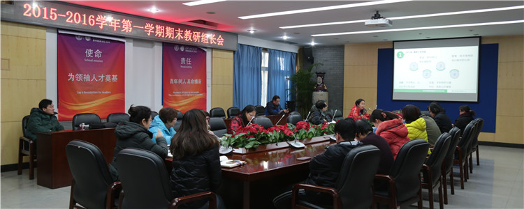 2016年1月13日,bg真人试玩2015-2016学年第一学期期末教研组长会在B102会议室召开。副校长徐文兵,教学管理与研究中心主任尹粉玉、朱培、副主任张苏,及全体教研组长20人参会。会议由尹粉玉主任主持。