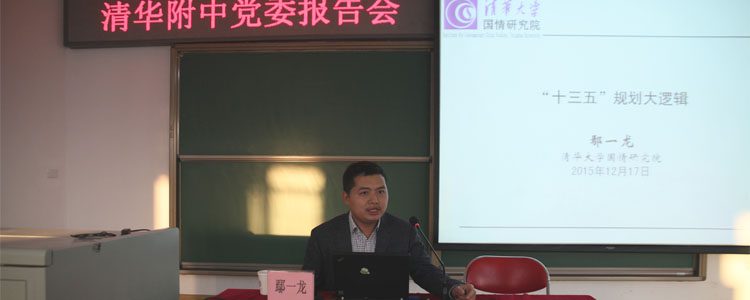 鄢一龙老师以国家制定十三五规划的大逻辑为切入点,从我国目前存在的问题开始,深入浅出,宏观概括十三五规划的内容,详细分析了我国发展存在的系统性问题。从创新发展、绿色发展、开放发展、协调发展、共享发展五个角度展示了我国未来发展的路线图,并列举了“规划”中提出的重大措施对我国经济社会发展的意义。他认为十三五规划对社会各方面的发展都将起到至关重要的作用,对未来五年社会大发展充满信心。最后,张洁总结强调,鄢老师对“十三五规划建议”的解读,对刚刚迈入新百年的附中起着重要的作用,将直接指导学校制定自己未来的五年规划,关系着学校的发展方向以及每位教职工的全面发展。