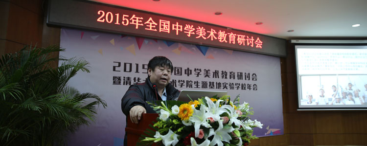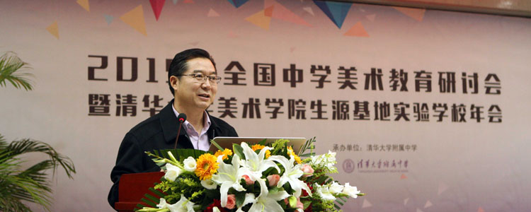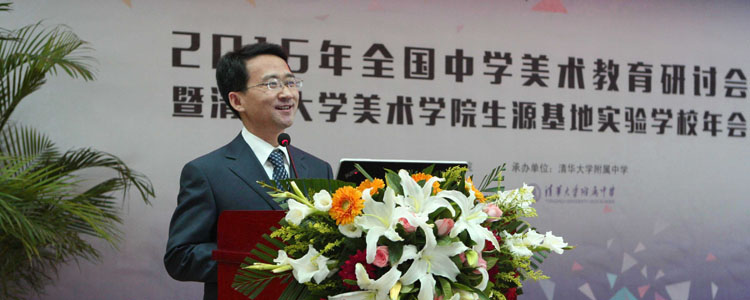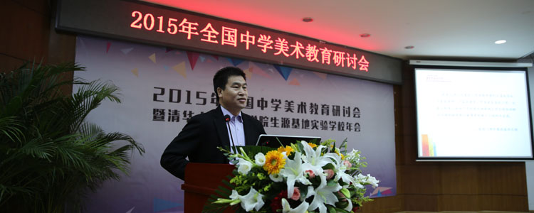 12月18~19日,由清华大学美术学院(简称:清华美院)主办、bg真人娱乐承办的“2015年全国中学美术教育研讨会暨清华大学美术学院生源基地实验学校年会”在清华美院和bg真人娱乐隆重举行。清华大学副校长杨斌,北京市教委体育卫生艺术处处长王军,清华美院院长鲁晓波、副院长张敢、教务办公室主任原博、招办主任郭林红,bg真人娱乐校长王殿军、党委书记方妍、副校长徐文兵等领导和嘉宾出席了开幕式。来自全国95所中学的257名相关领导和美术教师参加本次大会。