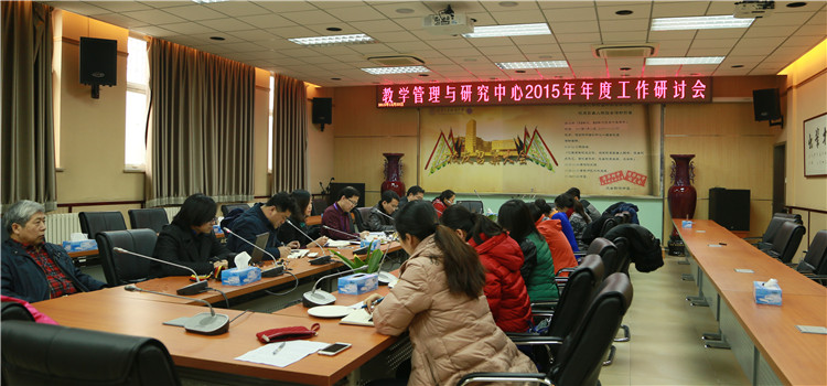 12月22日下午,bg真人试玩教学管理与研究中心2015年度工作研讨会在培训楼一层会议室召开,校长王殿军,党委书记方妍,副校长解巨钊、徐文兵,教学管理与研究中心主任尹粉玉、朱培、副主任张苏以及全体员工共20余人参会。会议由朱培主任主持。