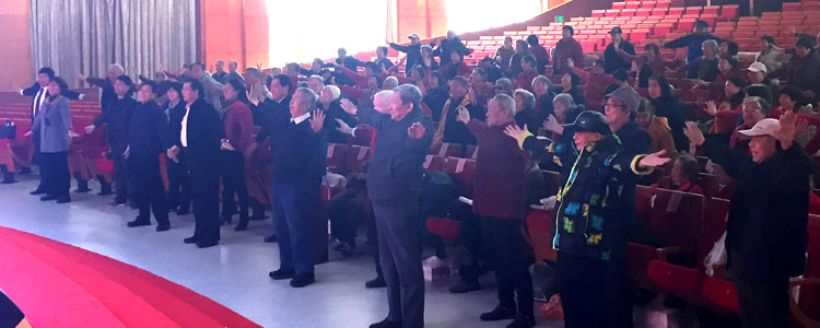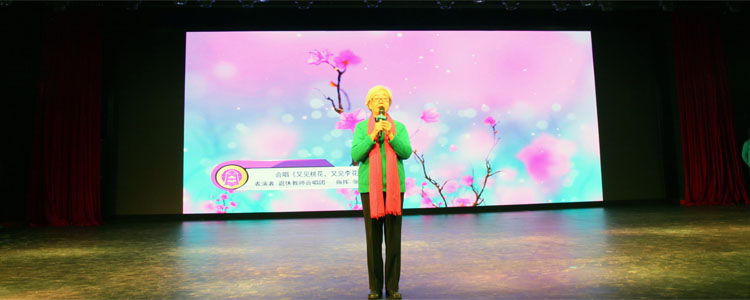 随后,由退休教师苏亭主持文艺演出。老同志们表演了大合唱、纱巾舞、诗朗诵等。离退休党支部义务支教和资助的京豫希望小学的学生表演了街舞和手语,赢得观众一阵阵热烈的掌声。最后台上台下全场合唱革命歌曲将大会推向高潮。