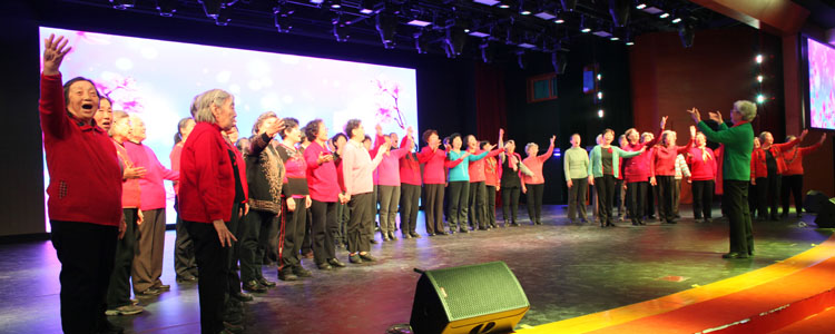 老教师合唱团表演大合唱《又见桃花又见梨花》