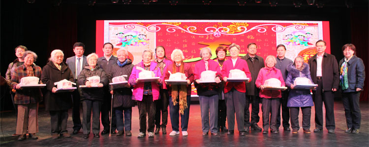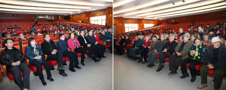 出席2015bg真人娱乐离退休教职工祝寿迎新会的领导嘉宾(左)及老同志们