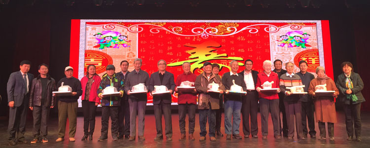 与会领导为寿星们发放蛋糕并合影留念(孙大鹏 摄)