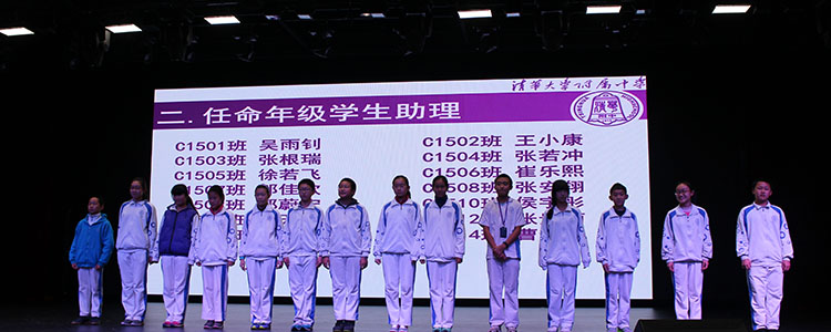 随后,14位学生被聘请为年级学生助理,他们将协助老师承担起年级管理的工作,同时他们也是年级学生会的主席团成员,领导年级学生会各部门开展学生活动、实现学生自治。年级组长张彪老师为他们颁发聘书。
