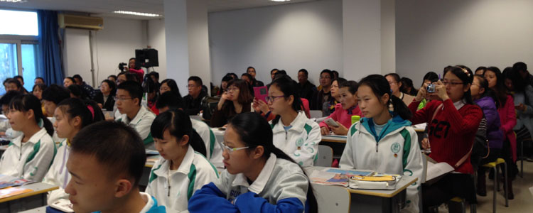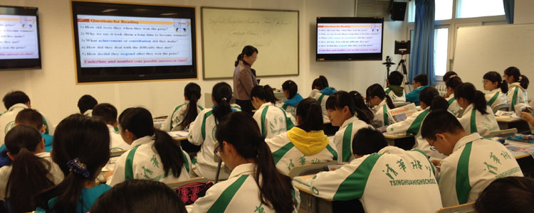 10月27日,bg真人试玩初二年级(初14级)英语组吕娜老师在实验楼Ipad录课教室进行了一堂以英文报纸阅读为主题的公开课。来自四川甘孜以及广西扶绥的82名老师进行了观摩学习。此次公开课旨在对教育资源相对薄弱地区的教师提供学习和交流的机会并对新课改形势下英语课堂教学模式进行探索。
