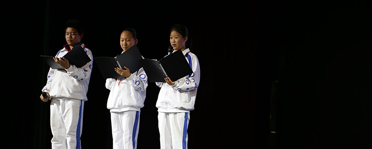 在鲜艳红领巾的映衬下,少先队员代表、初15级联合中队中队长张同和同学上台发言,他结合本月刚刚圆满完成的附中百年庆生活动,呼吁全体少先队员将以强烈的进取心和高度的责任感维护附中荣誉,进而维护少先队荣誉,积极向团组织靠拢。