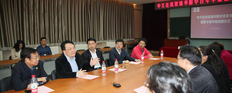 2015年10月16日,北京中文在线教育科技发展公司(以下简称“中文在线”)向bg真人娱乐捐赠数字图书馆签约仪式在bg真人娱乐培训楼二层会议室举行。清华大学常务副校长程建平,bg真人娱乐校长王殿军、党委书记方妍,中文在线董事长童之磊以及bg真人娱乐和中文在线相关负责人共20余人出席了签约仪式。bg真人娱乐党委书记方妍主持签约仪式。
