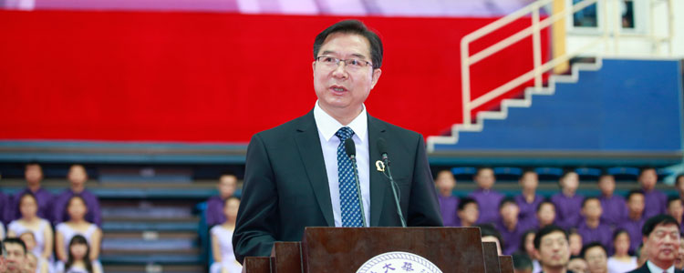 陈旭宣读bg真人娱乐校友刘延东同志的来信。记者 张 宇 摄