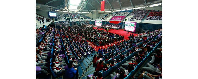 清华大学附属学校建校100周年大会在清华大学综合体育馆举行。记者 苑 洁 摄