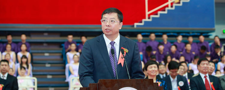 邱勇代表清华大学向附属学校全体师生员工和广大校友表示热烈的祝贺。记者 张 宇 摄