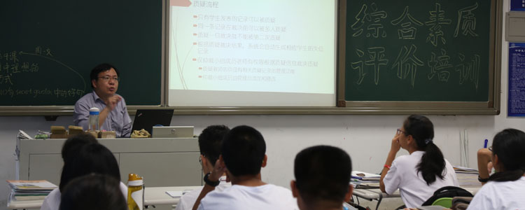 在正式开始学生培训前,初一、高一年级首先组织了班主任的统一备课培训,为接下来学生学习如何操作运用系统提供保障。在学生专题培训会中,各班班主任首先从建设学生综合素质评价系统的作用与意义出发,强调了使用综评系统在学生自身素质提升过程中的重要性,接下来则详细阐述了学校自主研发综评系统的设计理念、创新特色、优势特点,最后就系统整体的评价结构和模块内容进行细致讲解并作现场实践操作示范。