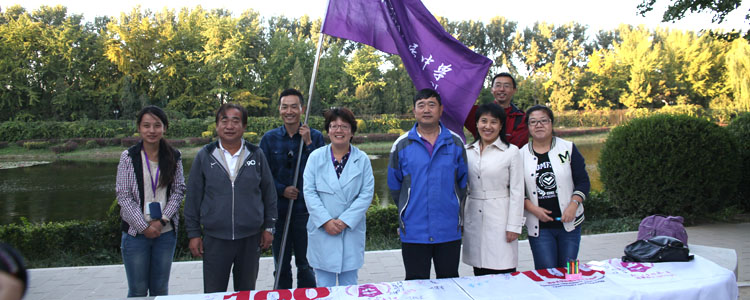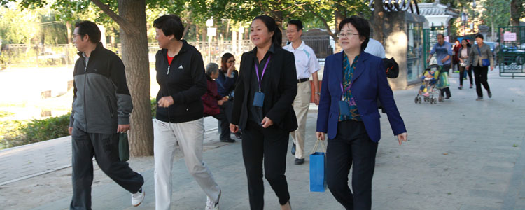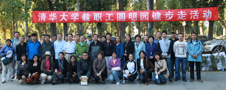 陈旭(左2)与附中校领导、老师们一起在圆明园健步走