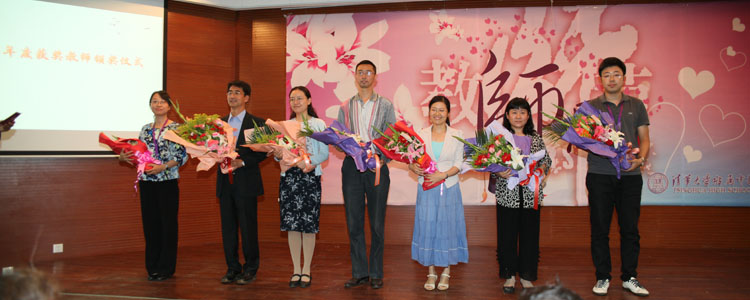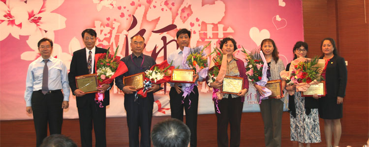 大会对2014-2015年度部分获奖集体和教师个人进行了表彰。青年教师为今年退休的教师、从事教育教学工作满30年和满40年的老教师献上鲜花和节日的祝福。