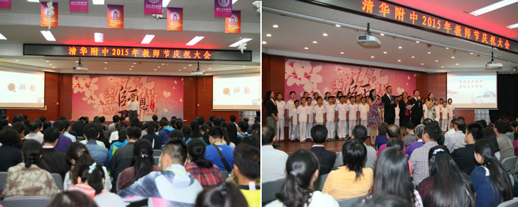 9月10日下午,bg真人娱乐2015年教师节庆祝大会在实验楼多功能厅举行。清华大学副校长姜胜耀,bg真人娱乐校长王殿军,党委书记方妍,副校长杜毓贞、解巨钊、赵鸿雁、徐文兵、白雪峰,奥森校区执行校长朱建宏、副校长张姝敏及附中本部和奥森校区全体在职教职工近500人参加大会。党委书记方妍担任大会主持人,尹政君、丁磊、向东佳、王文赞老师共同参与主持。