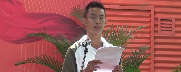 1505班的孙茂杰同学作为新生代表发言,对新校区充满兴奋,对新同学充满关爱,对新老师充满敬畏,对新生活充满喜悦。