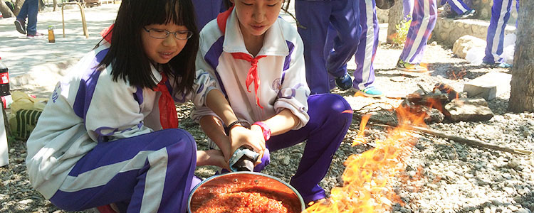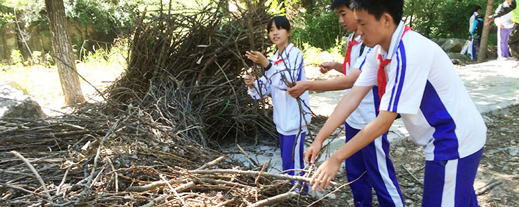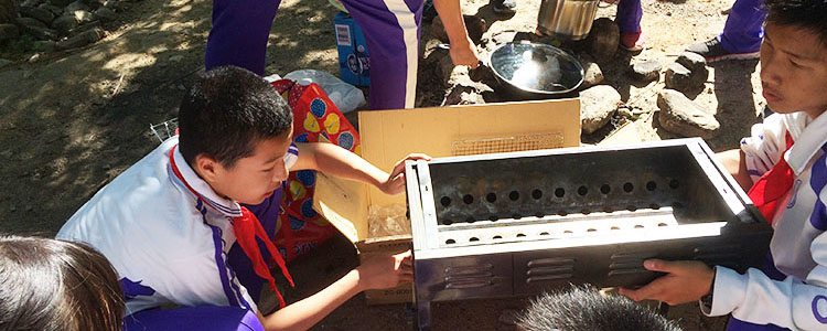 学生自己动手搭炉火