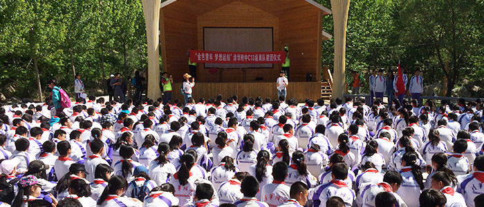 5月16日,bg真人娱乐初二年级(初13级)组织学生到神堂峪风景区举行了离队建团仪式暨春游活动。年级组长陈建荣带队,校团委老师赛寒、崔梅红,以及各班班主任、校医甄大夫、初二年级全体学生及任课教师共近600人参加了活动。