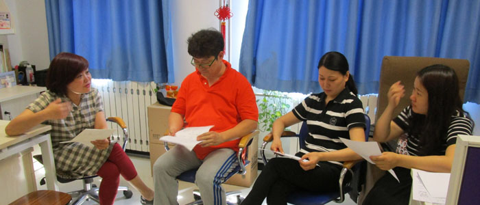 音乐组鞠红老师(左1)发言
