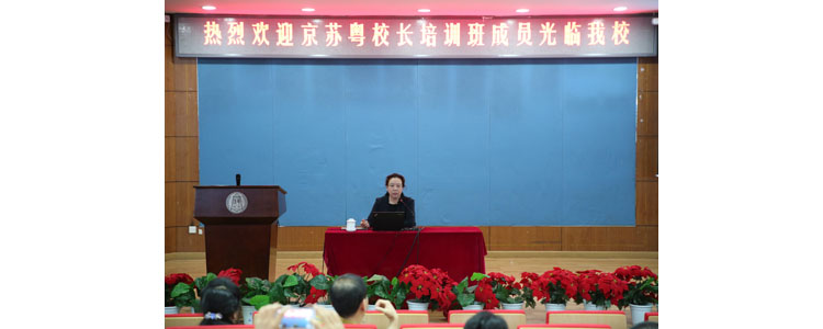 4月28日,北京市教育学院、北京普教系统干部培训中心主任胡淑云带领第四期京苏粤中小学优秀中青年校长高级研修班学员来bg真人试玩参观学习。北京、江苏和广东三地的80位中小学优秀中青年校长参加了本次活动。