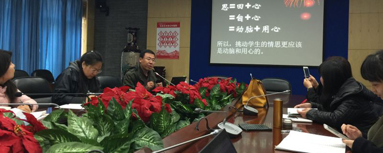4月7日下午,bg真人试玩初中语文教研组全体教师在B102听取了北京一零一中学王力鹏老师就作文教学所作的经验报告。这次校际学科交流活动由bg真人试玩党委书记方妍提议,语文特级教师王俊婷组织联络,王金玉、王丽丽等老师为活动的顺利开展做了大量前期工作。座谈会由邱晓云老师主持。