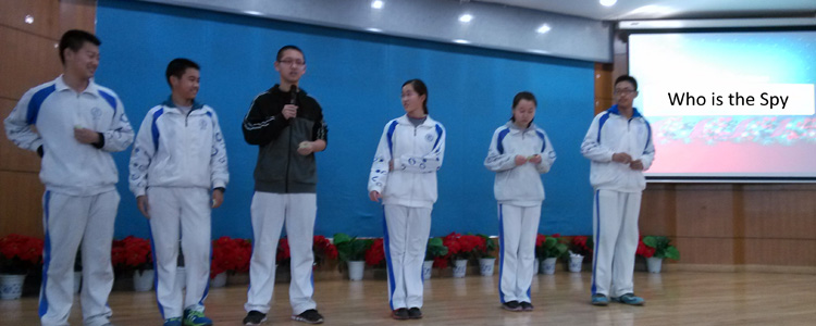 活动全程同学需用英语进行交流,完成三部分游戏:Eye to Eye(你比划我猜)、Pass on the Sentence (无声传话)、Who is the Spy (谁是卧底)。在Eye to Eye环节,同学两人一组,语言描述简洁精准,单词猜测极具默契;为了成功Pass on the Sentence,同学通过肢体语言,巧妙传意;而Who is the Spy环节中的假意真言,着实展现了同学们扎实的英语语言基本功。活动过程中所有同学都热情高涨,积极参与,在欢声笑语中感受着圣诞节的欢乐气氛,既练习了英语语言表达能力,提高了英语学习的兴趣,也为初三紧张的学习增添了乐趣。