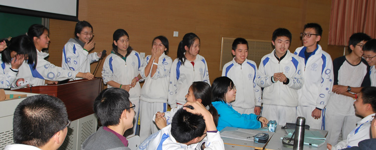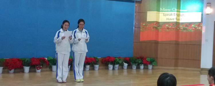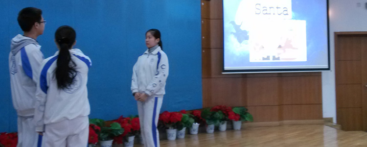 2014年12月25日,bg真人娱乐初12级同学利用自习课时间,举行了圣诞节英语特色活动——心有灵犀。活动由初12级英语老师策划,按老师所任教班级,分别在B106、B202、B206、B302、B306、D215六个会场进行,活动由学生担任主持人,全体学生积极参与,初12级班主任及英语教师到场指导。