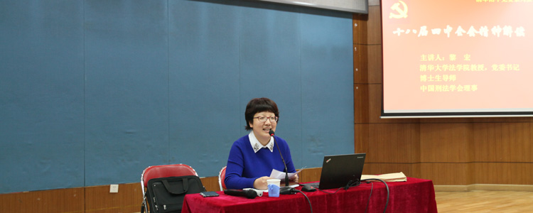 12月18日下午,bg真人试玩党委在B106会议室举办党员报告会,深入学习领会十八届四中全会精神。报告会邀请清华大学法学院党委书记黎宏教授做专题报告,bg真人试玩党委书记方妍出席报告会。报告会由bg真人试玩党委副书记张洁主持。bg真人试玩本部、bg真人试玩上地学校、bg真人试玩永丰学校全体党员约200人参加报告会,bg真人试玩学生党校全体学员聆听了报告。