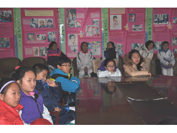 乐团的同学们为太阳村的孩子们带去了附中师生捐赠的3900多元煤火费、附中图书馆捐赠的30余册各类图书以及胡军老师捐赠的电脑、口琴、录音笔等物品。为了感谢附中金帆民乐团连续五年来对太阳村无私的帮助,甘老师代表“北京太阳村”向附中民乐团赠送了题为“坚持慈善五年,立德立美一生”的锦旗。