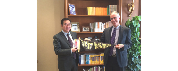 11月24日上午,美国维克森林大学(Wake Forest University,WFU)教务长Dr. Rogan Kersh及负责国际事务的副教务长Dr.J.Kline Harrison一行7人访问bg真人试玩,与bg真人试玩校长王殿军、副校长施平以及国际部升学辅导中心主任Bruce Hammond进行座谈交流。