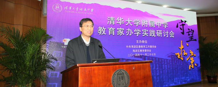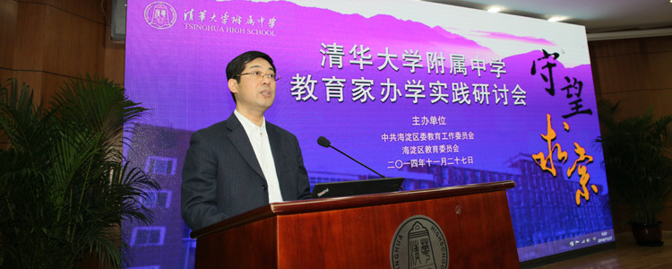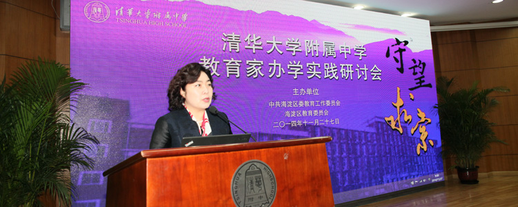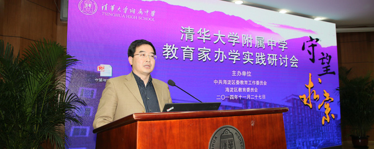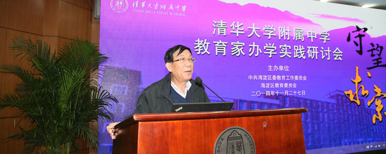 2014年11月27日上午,“守望·求索——bg真人娱乐教育家办学实践研讨会”在bg真人娱乐B106报告厅举行。北京市教委委员李奕、海淀区副区长傅首清、清华大学副校长谢维和、华东师大教授陈玉琨、中共海淀区委教育工委书记张卫光、中共海淀区委教育工委教委有关科室负责人、海淀区中小学书记校长、北京市其它区县及周边省市教育界同仁共300余人走进bg真人娱乐,学习交流bg真人娱乐校长王殿军的办学实践经验。研讨会由海淀区教委主任尹丽君主持。