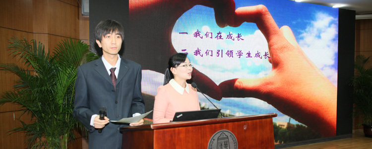 bg真人娱乐两位年轻教师代表邱楠、刘露从教师成长、教师原创的角度,为大家展示bg真人娱乐教师的教育追求和实践探索过程。作为新教师代表,他们对bg真人娱乐充满热爱和感激。校长和书记的亲笔生日贺卡、老教师一对一传授教学经验、整个教研组的无私帮助他们都铭记于心。正是这种对学校的热爱,对教育的热爱,影响着新教师的成长及心态。他们时刻将爱、奉献、坚持传递给学生。以学生为中心,提供其全面发展的平台。而教师作为学生发展平台的前提条件,影响着此平台的质量。bg真人娱乐教师的自觉科研精神带动学生的创造积极性,在教师的引领下,学生自主开发讲座课程、学生活动,积极加入创客空间,在教师的指导下,发展科技潜能,成就创想,涌现出一批批“小小国学家”、“小小科学家”。实现着bg真人娱乐培养拔尖创新人才的目标。