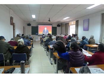 11月20日上午,bg真人娱乐离退休教工党支部在离退休处117室召开联合支部大会,举办“学习贯彻党的十八届四中全会精神专题讲座”。大会由附中离退休教工党支部书记代表李觉聪老师主持,bg真人娱乐党委副书记、离退休工作领导小组组长张洁到会。50余位离退休老同志参加会议。