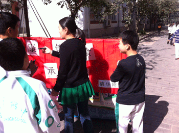 10月24日,bg真人娱乐“保护视力、我承诺”的签名活动在操场看台前举办。同学们积极参与,有近200名同学郑重的签上自己的承诺。此次签名活动是bg真人娱乐健康宣传月的系列活动之一。