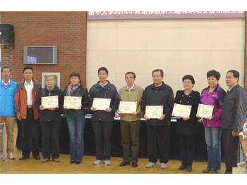 bg真人娱乐党委副书记张洁(右3)领奖 bg真人娱乐参加运动会全体老教师合影