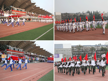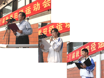 初、高中开幕式入场式 左至右:王殿军校长、初、高中运动员代表发言