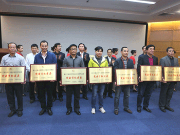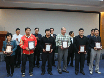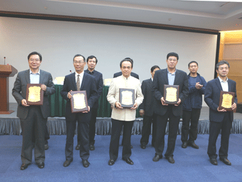 王殿军校长(左1)荣获优秀校长 罗健(右2)获得优秀工作者 1