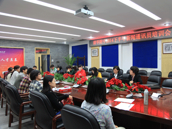 校党委副书记张洁主持会议 2014下半年新闻通讯员培训会现场